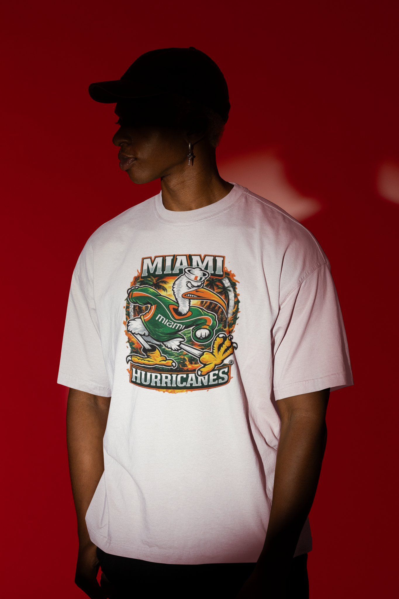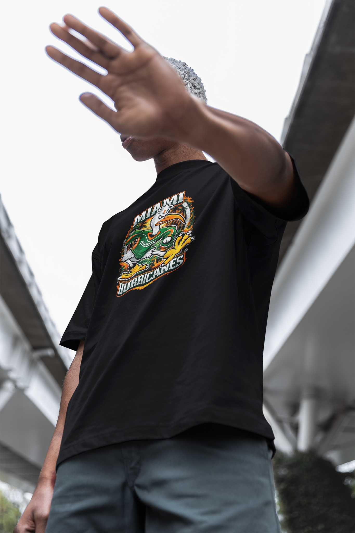 Make a bold statement with this Miami Hurricanes graphic tee, designed for fans who love comfort, style, and standout streetwear. Featuring a vibrant, high-detail Hurricanes mascot graphic on a classic black tee, this shirt brings game-day energy into everyday wear.